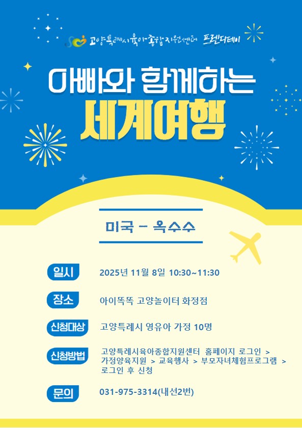 - 아이똑똑 고양놀이터 화정점 : 2025년 11월 8일(토) 10:30~11:30, 10가정 >신청하러 바로가기<