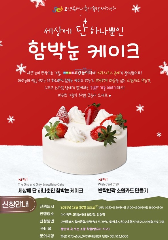 | [아이똑똑 고양놀이터 탄현점] 2025년 크리스마스 프로그램-세상에 단 하나뿐인 함박눈 케이크 | |||||