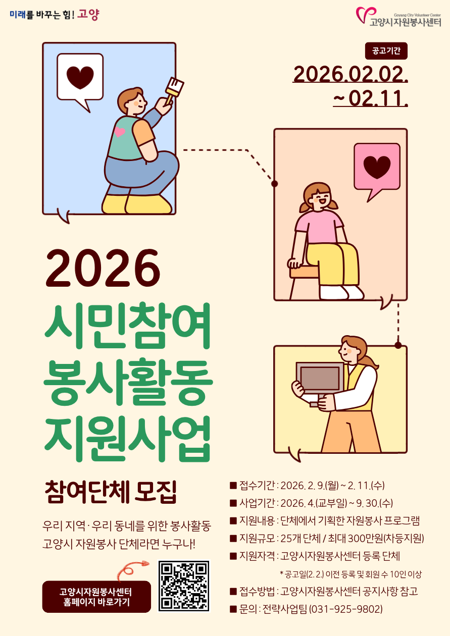 | [고양시자원봉사센터] 2026 시민참여 봉사활동 지원사업 공고 안내 | |||||