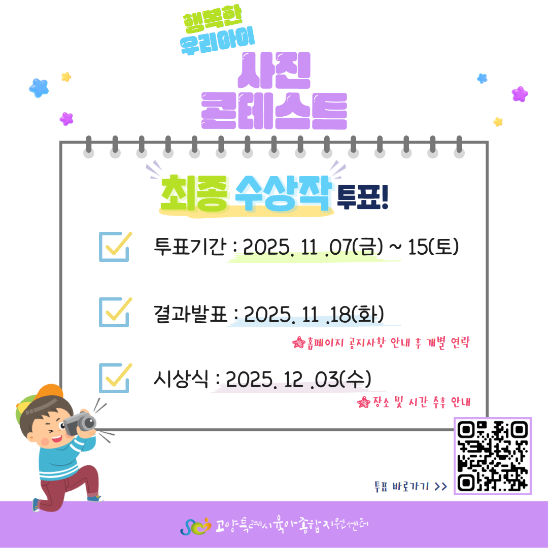 | 2025년 행복한 우리아이 사진콘테스트 최종 수상작 선정을 위한 온라인 투표 | |||||