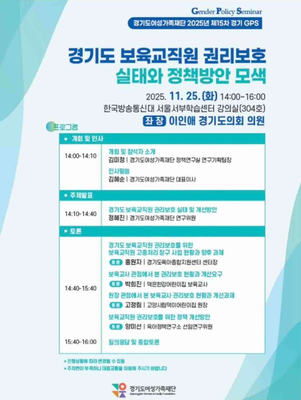 | [토론회안내] 경기도 보육교직원 권리보호 실태와 정책방안 모색 | |||||