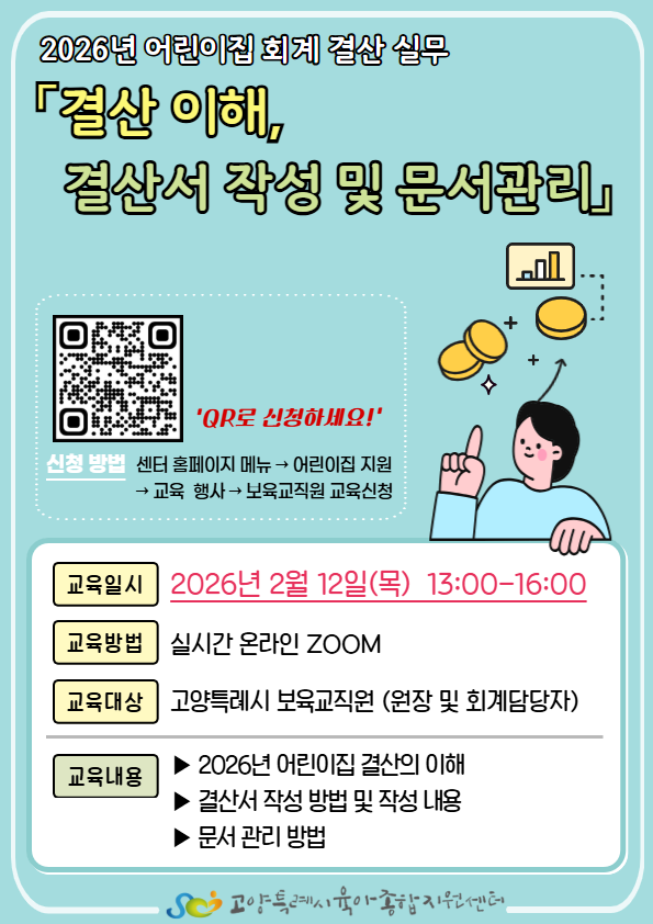 '2026년 어린이집 회계 결산 실무: 결산 이해, 결산서 작성 및 문서 관리 신청안내