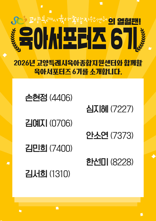 | [고양특례시육아종합지원센터] 6기 육아서포터즈 선정 결과 안내 | |||||