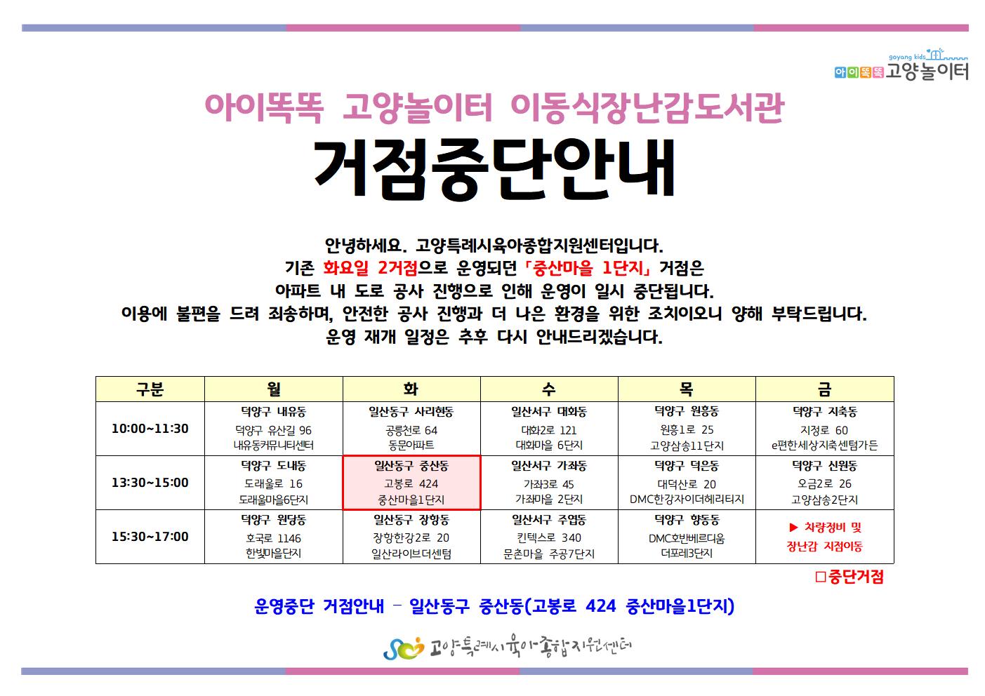 | [아이똑똑 고양놀이터] 이동식장난감도서관 거점중단안내 | |||||