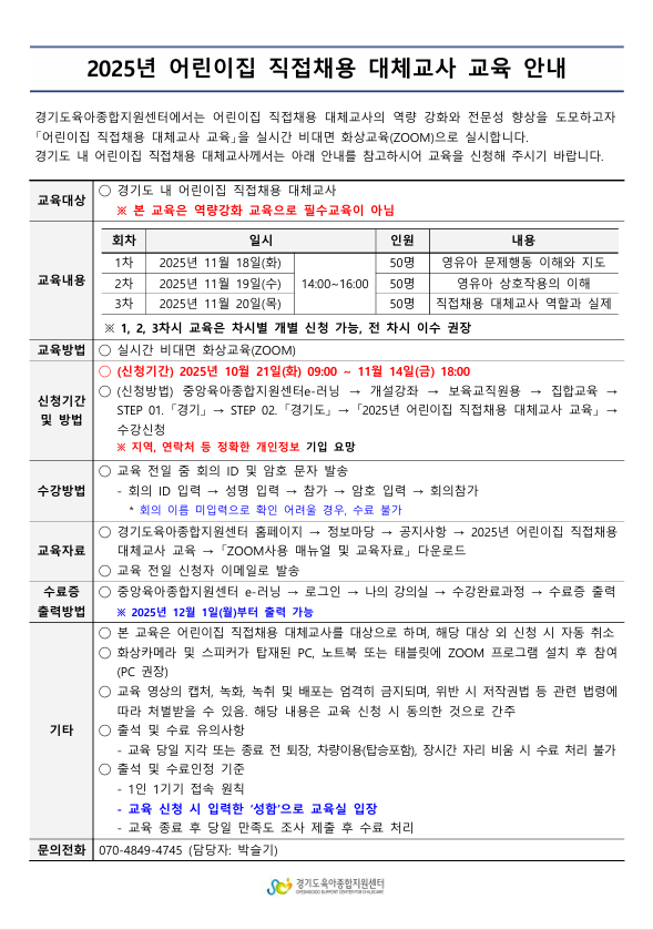 2025년 어린이집 직접채용 대체교사 교육안내 | |||||