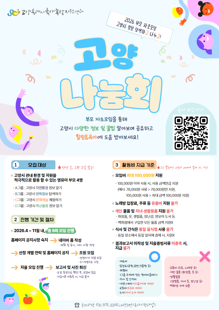 | [육아지원사업] 2026 부모 자조모임 힐링프로그램 '고양 나눔회' | ||||||||||||||||||||||||||||||||||||||||