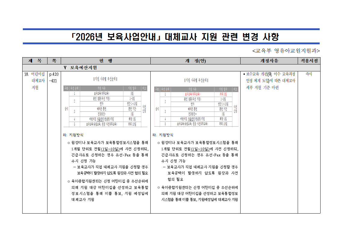 | [대체교사지원사업] 2026년 보육사업안내 대체교사지원 관련 변경사항 안내 | |||||