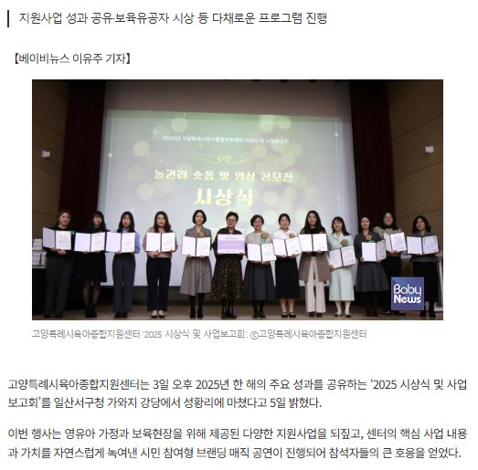 | 고양특례시육아종합지원센터, 2025 시상식 및 사업보고회 성료 | |||||