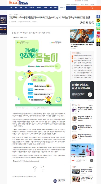 | 고양특례시육아종합지원센터 아이똑똑 고양놀이터, 신체·화훼놀이 특성화 프로그램 운영 | |||||