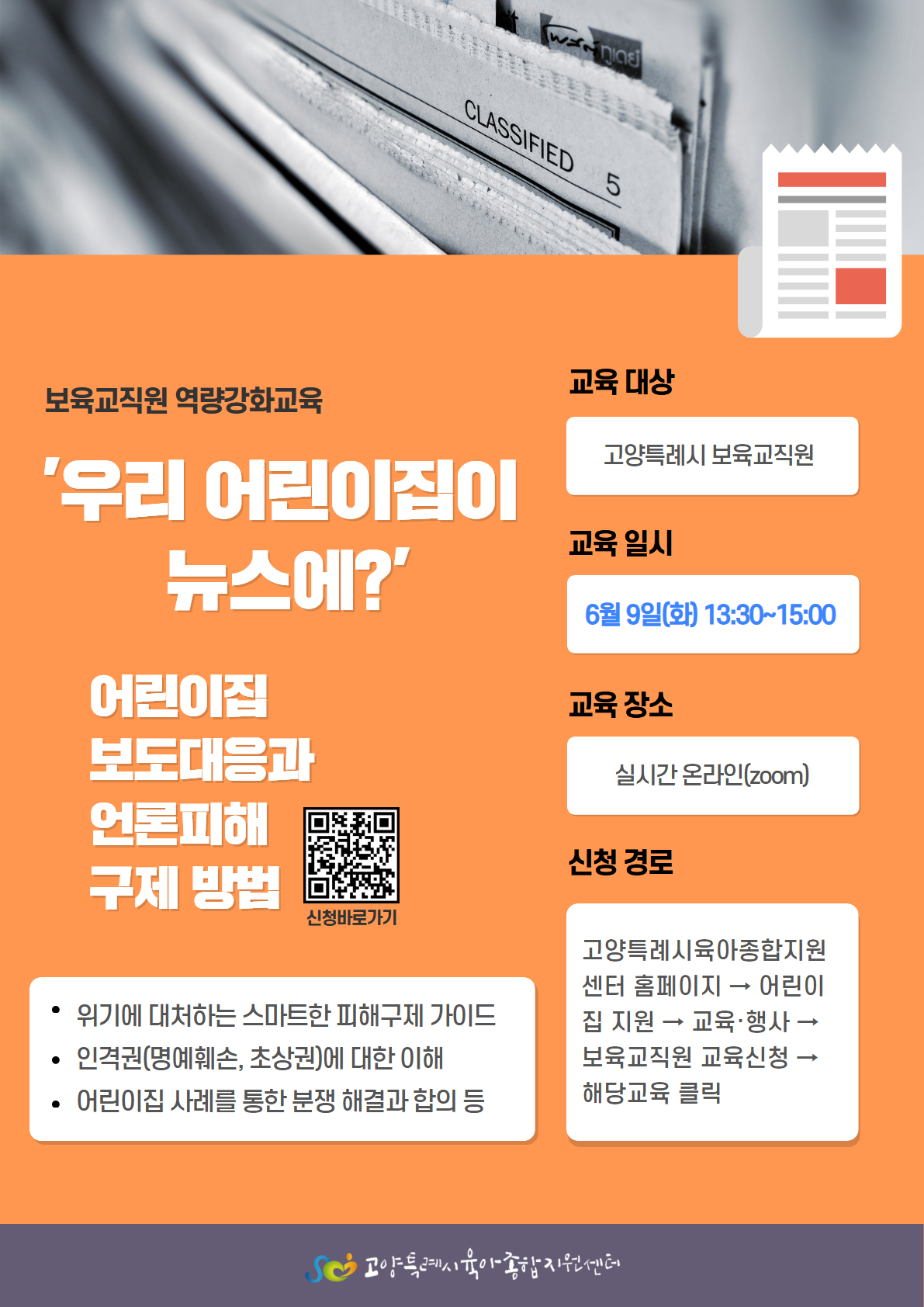 * 고양특례시 관내 어린이집 보육교직원을 대상으로 하는 교육입니다