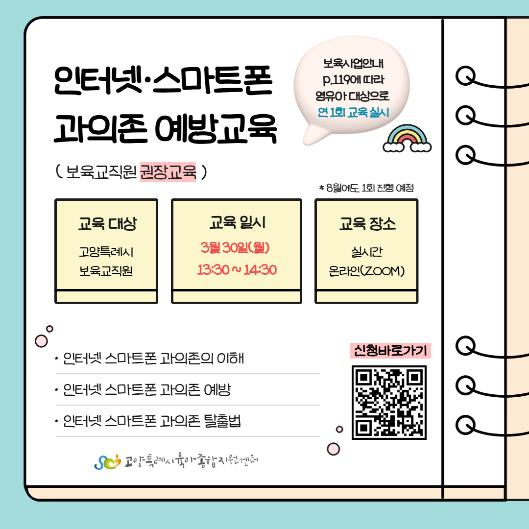 * 고양특례시 관내 어린이집 보육교직원을 대상으로 하는 교육입니다