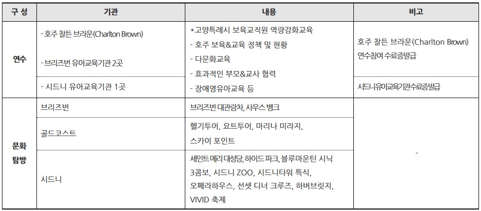 | 고양특례시&호주 MOU 기관 연계를 통한 원장 및 보육교직원 역량강화 해외연수 | |||