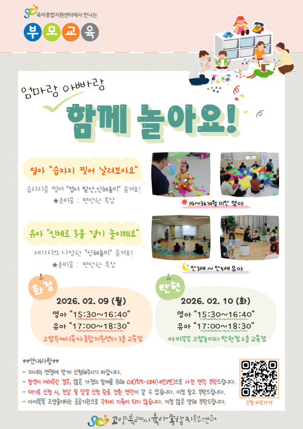 | 2월 엄마랑 아빠랑 함께 놀아요!(유아/아이똑똑 고양놀이터 탄현점 2층 교육장) | |||