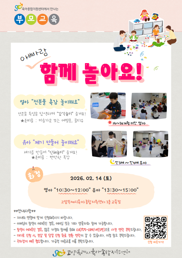 3) 2026년 2월 14일 (토) 유아-13:30~15:00 시간에 맞춰 고양특례시육아종합지원센터 3층 교육장으로 방문