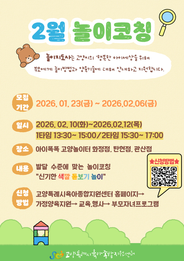 [놀이지도사업] 2월 놀이코칭 프로그램 (아이똑똑 고양놀이터 관산점 1타임 -15:30~17:00)