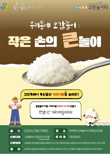 ![]() 아이똑똑 고양놀이터 우리동네 오감놀이: 작은 손의 큰 놀이 프로그램 안내