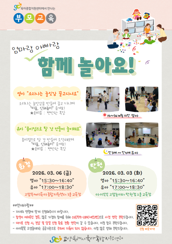 3월 엄마랑 아빠랑 함께 놀아요! "영아-고양특례시육아종합지원센터 3층 교육장"