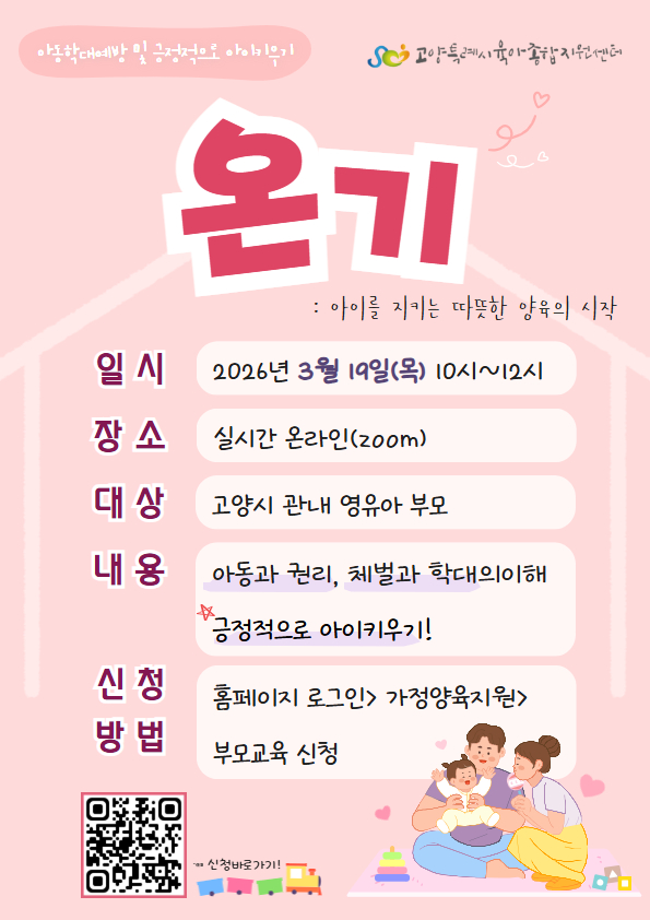 [온기:아이를 지키는 따뜻한 양육의 시작] 부모교육을 실시하오니 영유아 부모님들의 많은 참여 바랍니다.