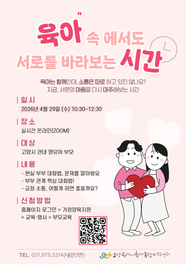 [영유아 부부 소통교육 '육아 속에서도 서로를 바라보는 시간'] 부모교육을 실시하오니 영유아 부모님들의 많은 참여 바랍니다.